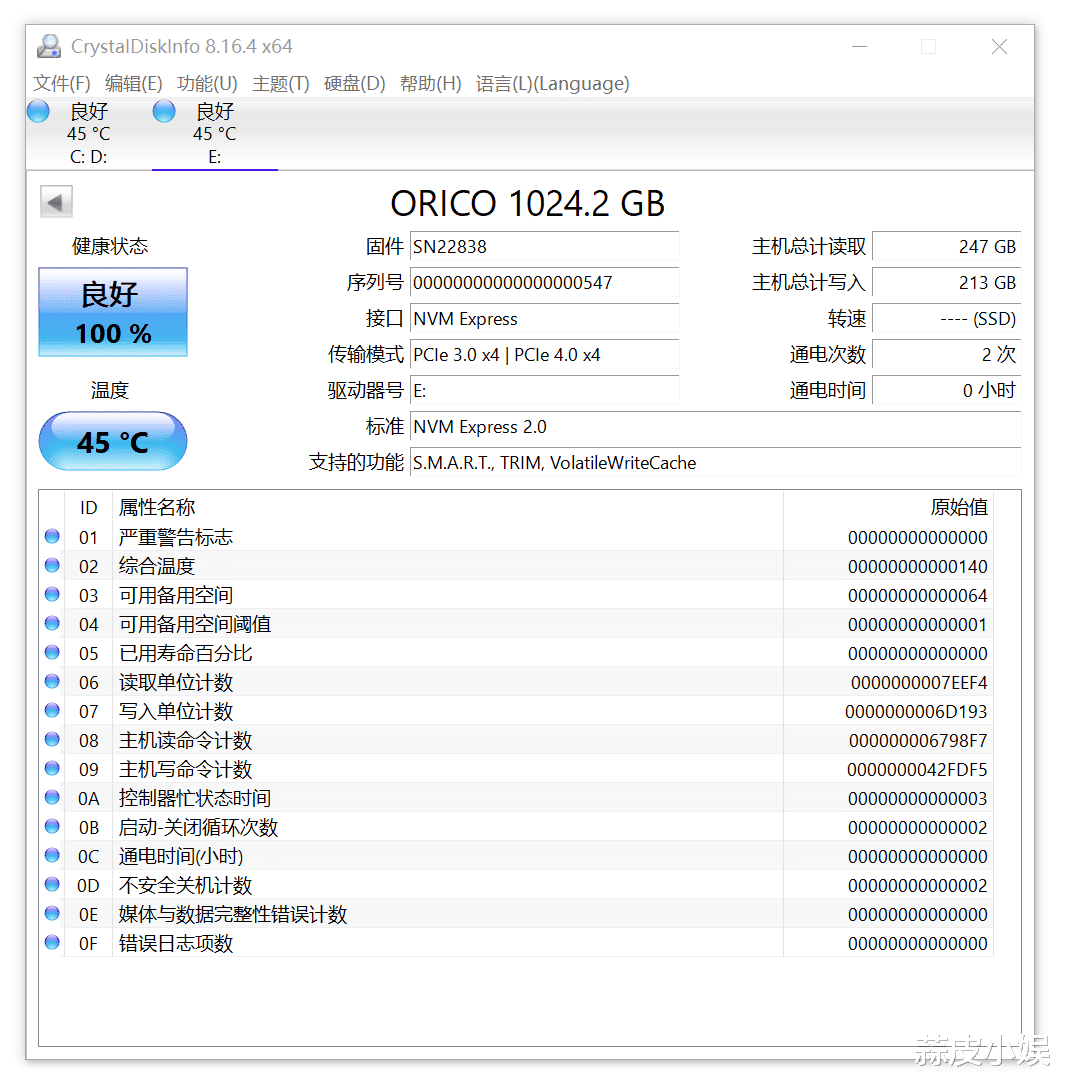 在酷睿i5-13600KF+B760主板的intel平台上,通过PCIe 5.0x4插槽进行识别,可以看到,实际容量为953.85GB,兼容PCIe 4.0标准。