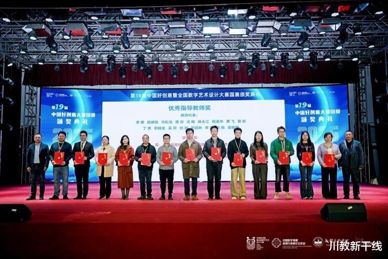 论坛同期举办的第19届中国好创意大赛国赛颁奖典礼上,赛事竞争异常激烈,全国各高校顶尖学子同台竞技。该校学子凭借过硬的专业素养与突出的创新能力脱颖而出,交出了亮眼答卷:马凌云同学团队以独特的创意思维、精湛的作品呈现,拿下全国一等奖;黎明、雷佳灵、刘若泉同学团队表现不俗,获评全国三等奖;指导教师沈概深耕教学、悉心指导,获评优秀指导教师奖。颁奖现场,银杏师生登台领奖,展现了该校学子在数字创意与文化表达领域的深厚积累,也让全场见证了该校育人成果的硬核实力。