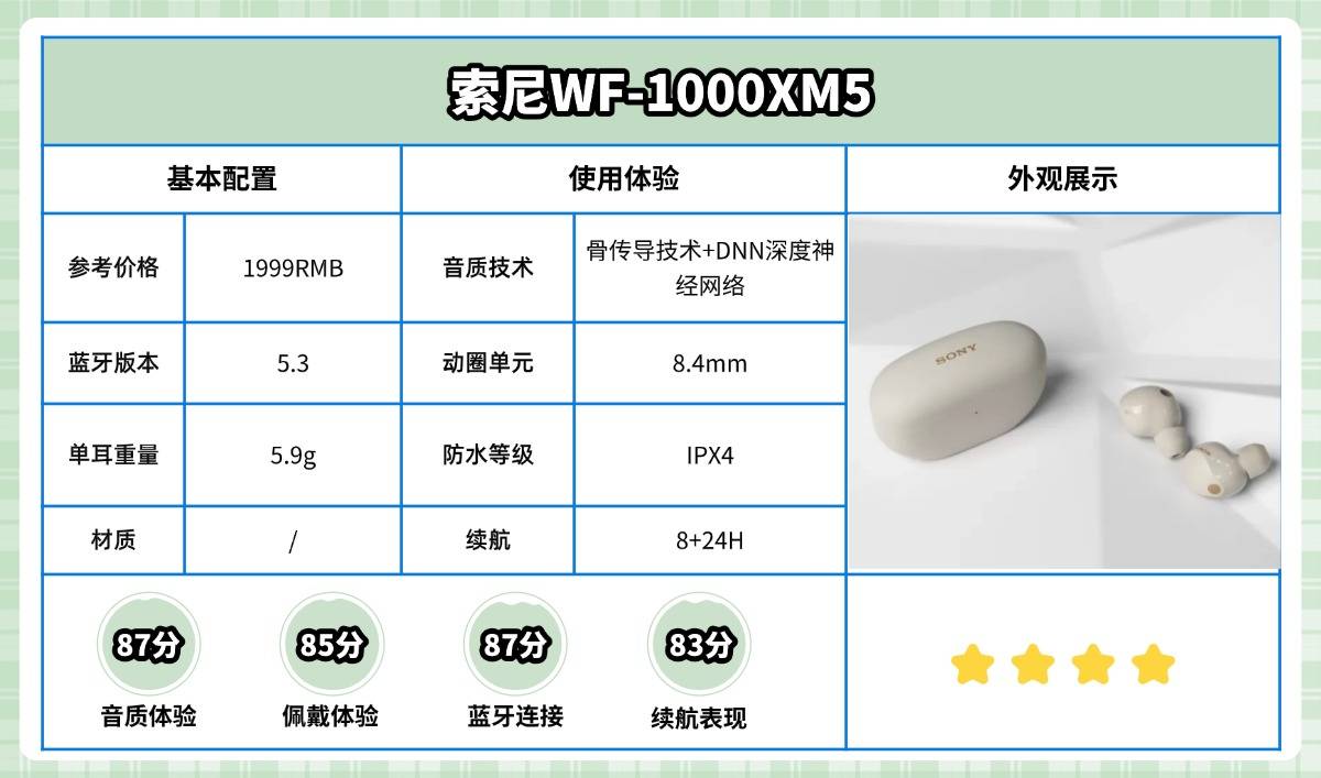 推荐二、索尼WF-1000XM5蓝牙耳机