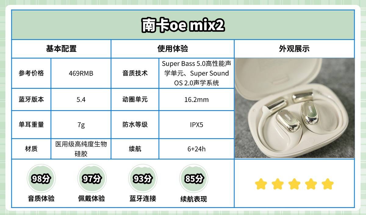 蓝牙耳机哪个好用又不伤耳?1.南卡OE Mix2
