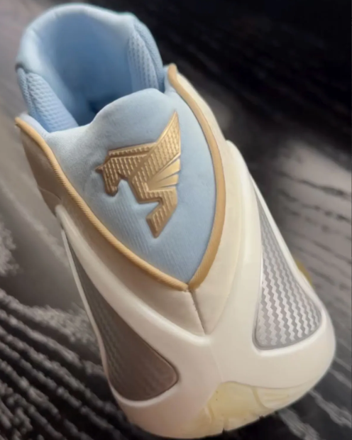 此外,鞋履后部选择了一个非常有趣的飞马图案进行设计,这不仅契合了「Year Of The Horse」这个配色的主题,而另一方面来讲,对比起很多球星,这位球星确实的打法确实非常吸引力,而长翅膀的马也暗示着Anthony Edwards在球场上犹如飞人一般的扣篮能力。
