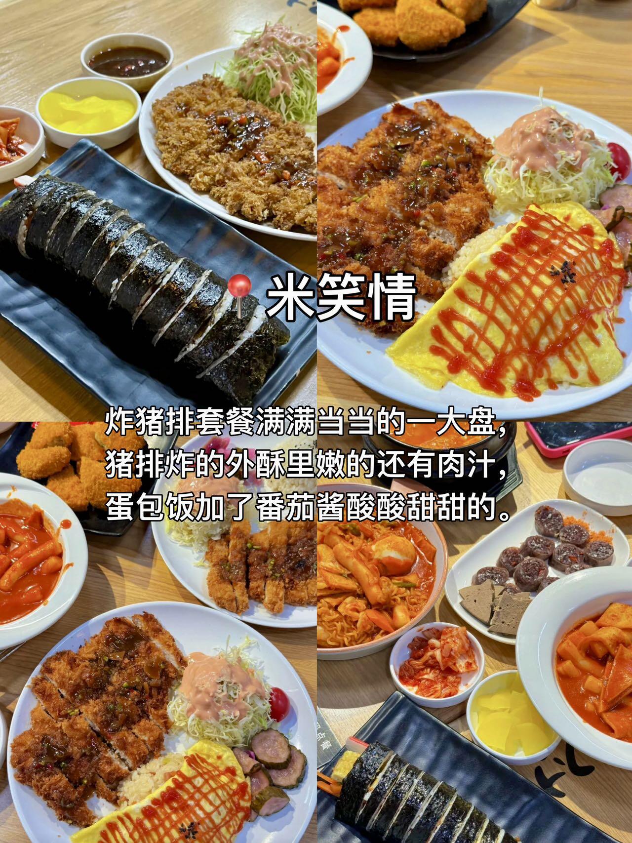 紫菜包饭的馅料多到都要溢出来了,乌冬面炒年糕鱼饼是甜辣口的,喜欢酸甜口的会很喜欢吃。