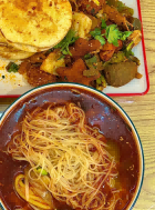 麻辣烫是红油麻辣烫不是麻酱的!!真的好香~炸串、冷面一定要试试!太宝藏啦~可以让老板别剪饼,夹着炸冷面和炸串吃~