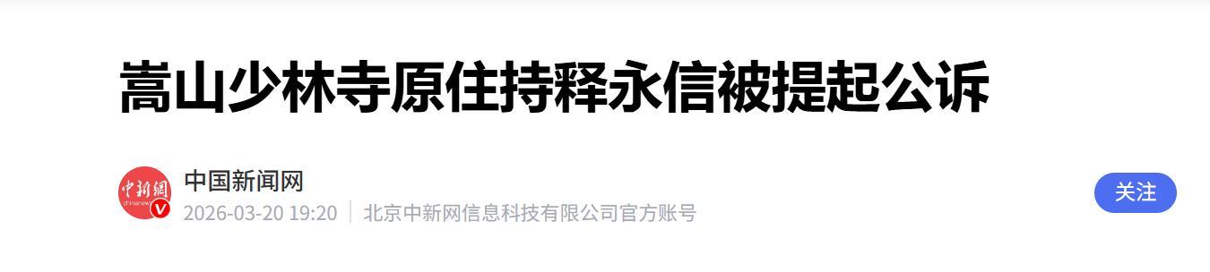 不久前,官方传来重磅消息:原少林寺住持释永信,已被正式提起公诉。