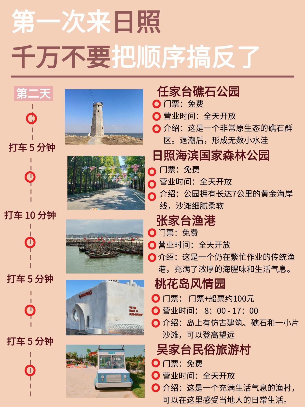 第二天:任家台礁石公园-日照海滨国家森林公园-张家台渔港-桃花岛风情园-吴家台民宿旅游村