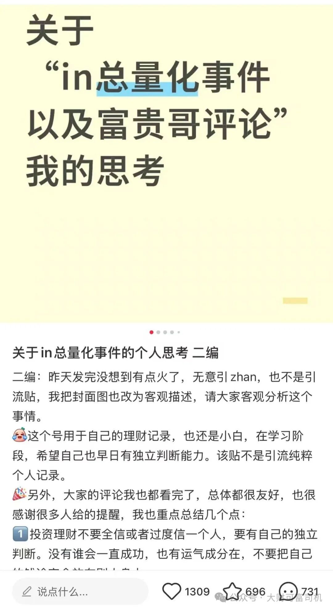 真正的量化交易,看的是宏观数据、行业景气度、企业财报这些硬货,哪有闲心管博主说什么?要是盯个博主就能赚钱,那量化机构早把所有财经号都买下来了,还轮得着他来爆料?