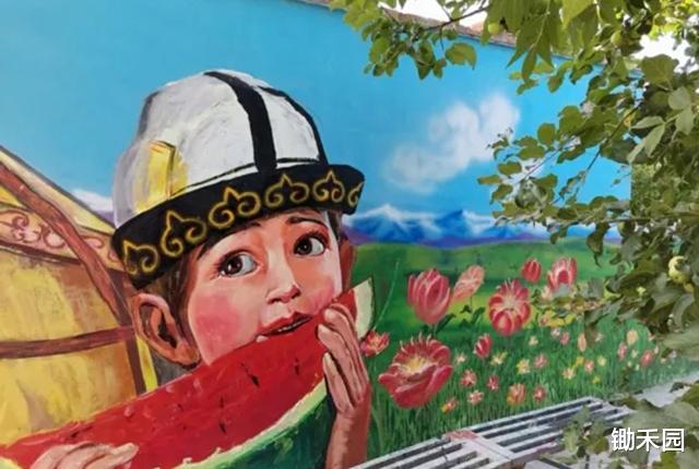 这刷墙可不是简简单单的去除小广告,而是全村统一的做墙绘。就像这样: