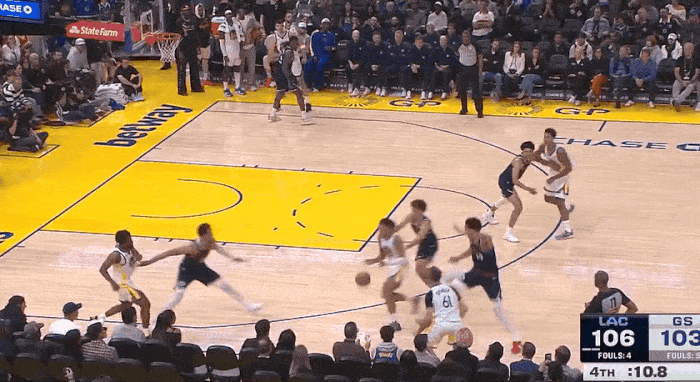 NBA季前赛,勇士对阵快船的比赛正在进行中。