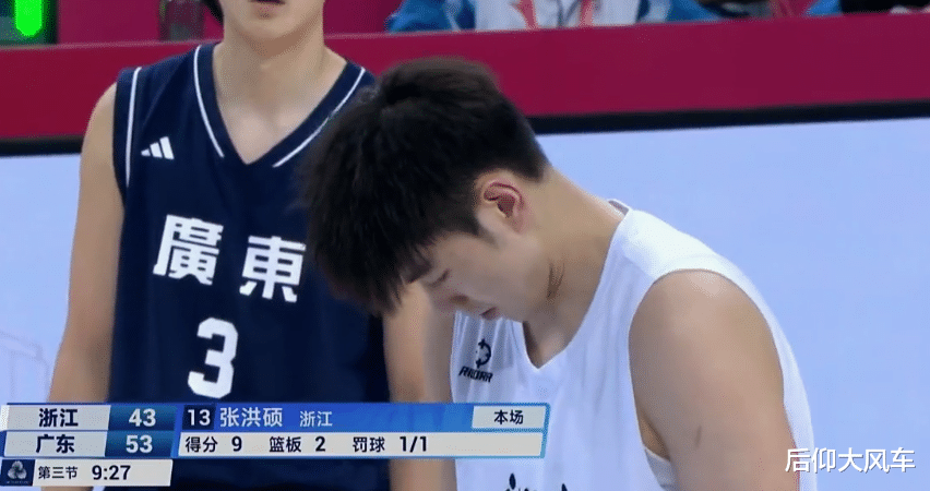 不得不承认,这会广东队是有些被打懵了,由于多数主力打不了,浙江队的年轻替补们憋了太久终于获得出场机会,反而异常兴奋,攻防两端相当积极,虽然赔上不少犯规,但也成功将广东队的进攻节奏打断,周鹏、赵睿是上半场广东队打的最郁闷的两位。