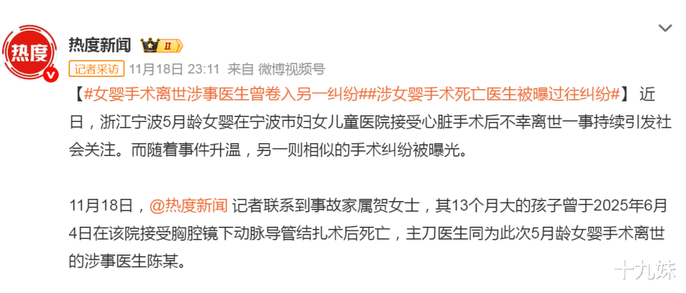 目前,涉事医生陈贤君已被停诊,宁波市卫健委已成立调查组,将事件定性为 “比较重大医疗纠纷”。但网友和家属想要的,远不止于此。他们期待一场彻底的调查,还原两起手术的完整真相,查清是否存在医疗过错,以及此前的类似纠纷是否被 “低调处理”。