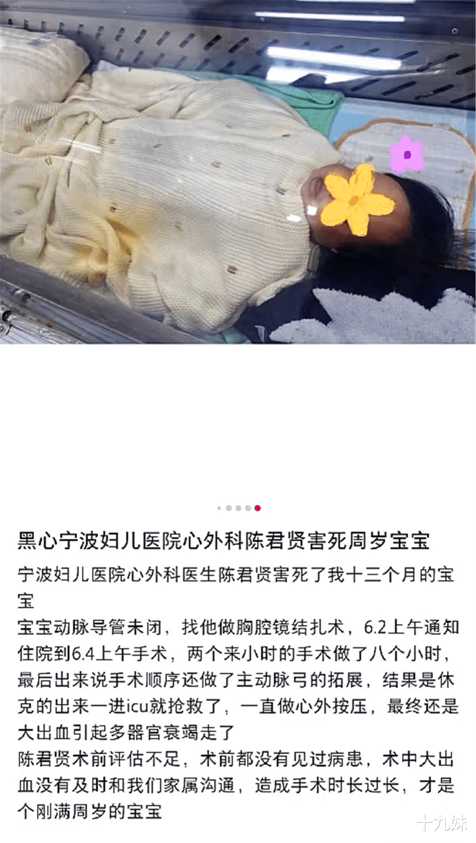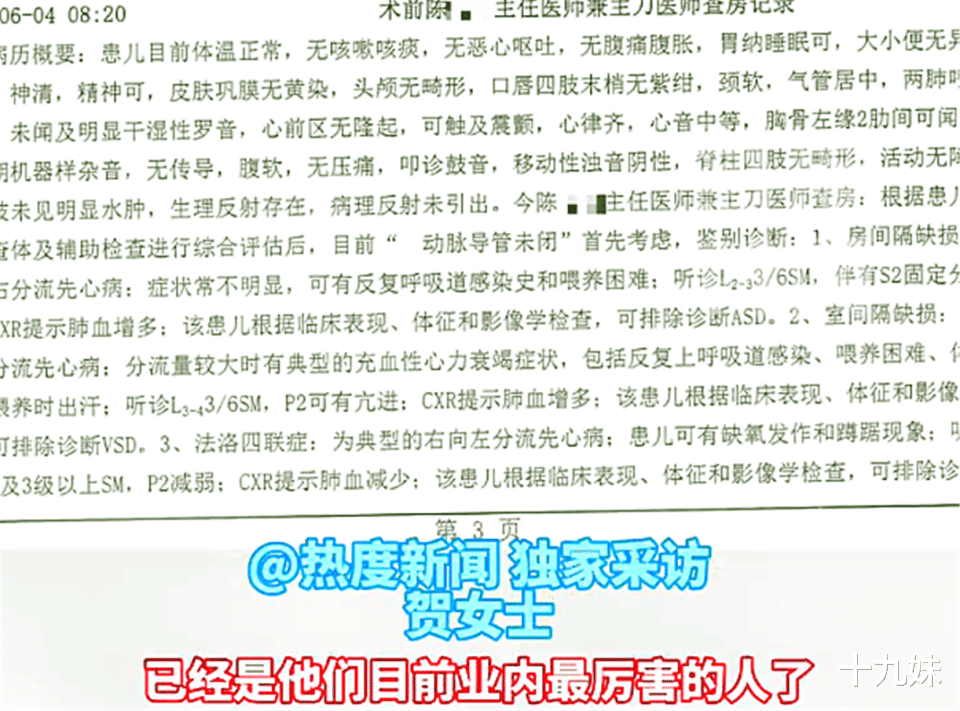 2025 年 6 月 4 日,贺女士 13 个月大的孩子因动脉导管未闭,在同一家医院接受胸腔镜下结扎术,主刀医生正是陈贤君。