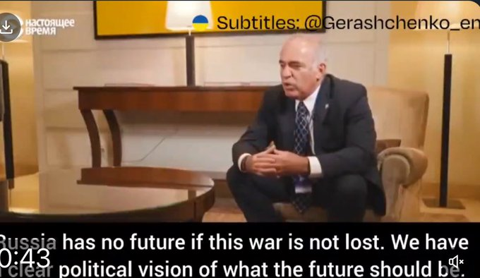 “如果俄罗斯在这场战争中没有失败,俄罗斯将没有未来。俄罗斯成为现代文明国家的唯一机会,是从乌克兰撤军、归还侵占领土、支付战争赔款并引渡战犯“。