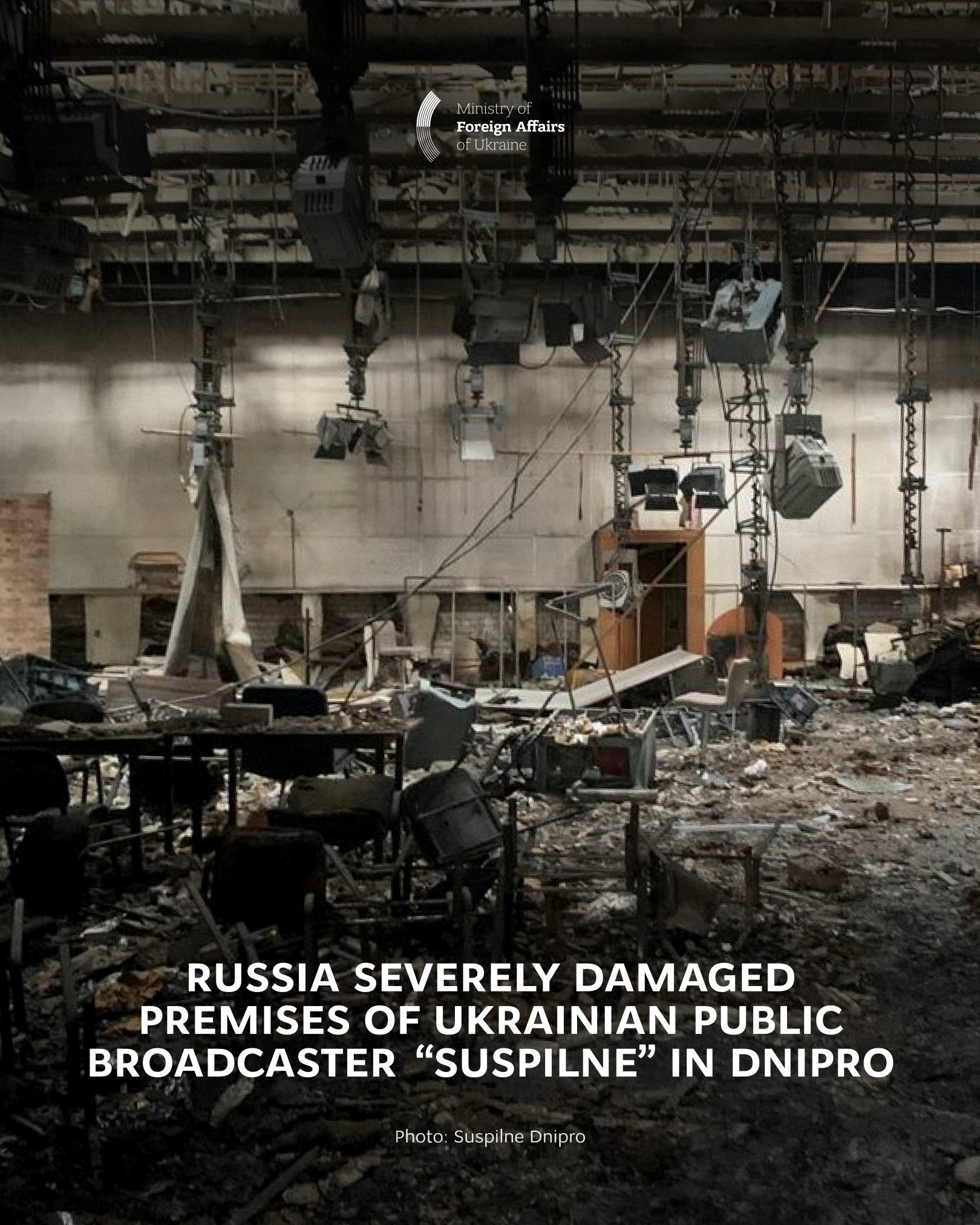 11月18日,俄罗斯对第聂伯罗市乌克兰公共广播公司"Suspilne"的建筑物发动了无人机袭击,震碎了门窗,并对建筑物的部分区域造成了严重破坏——包括被完全烧毁的演播室。