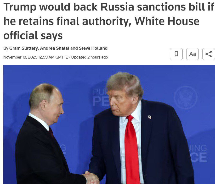 路透社报道,白宫高级官员表示,川普将支持针对俄罗斯的制裁法案,条件是保留对制裁最终决定的权力。