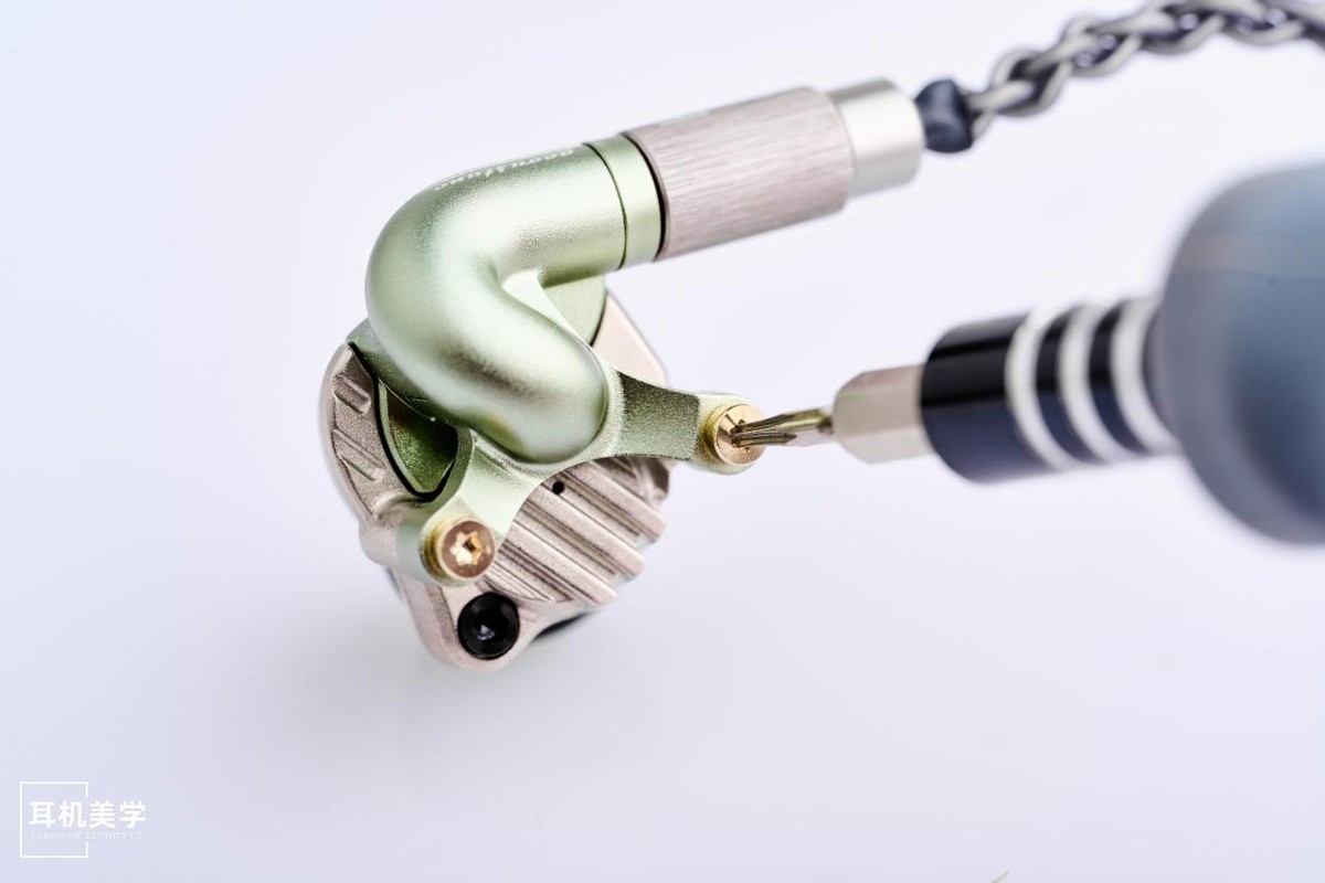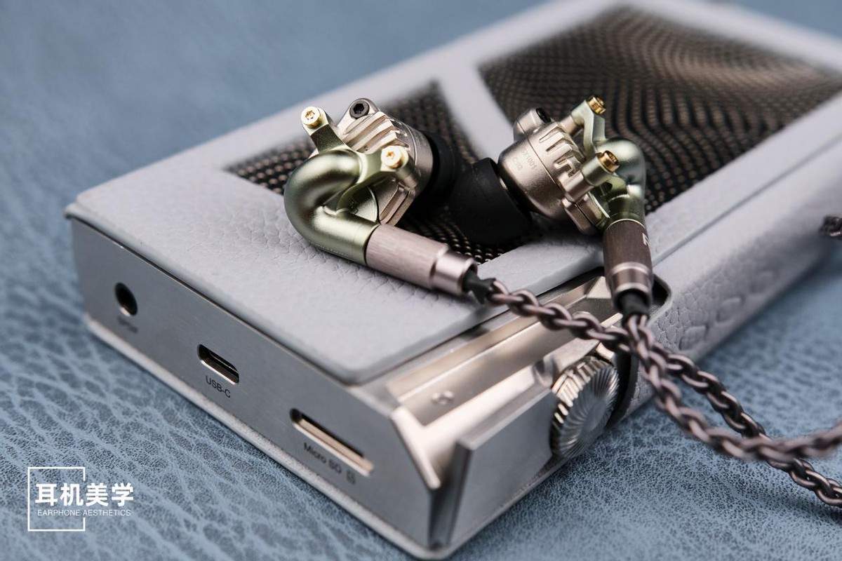 外观方面,C03:M02G充分继承了Acoustune的家族式设计,显得棱角分明,科技感十足。其中M02G,和C02:M02的有线模块一样,都使用了铝合金打造,只是配色方面改为了与Acoustune老产品HS1503 AL一样的鼠尾草绿,这也是它的名称多了一个“G”(green)的原因。至于C03,则采用了银白色的德国银材质作为腔体。德国银这种材质的声学价值很高,其本质是铜镍合金,像艾利和SP2000T、SP3000M 白铜版、Acoustune自家的ACT006、ACT007,还有许多乐器,比如说长笛都使用了这种材质。它的特点是可以显著增强中高频延伸,同时突出中高频共鸣感,使音色更加顺滑、通透且生动鲜活。不过,德国银的声学价值虽然相当优秀,但其作为单动圈耳机的腔体时,低频的下潜深度会显得浅一些,同时打击力度也不够强烈,整体听感略软。为此Acoustune特意打造了一款新动圈单元,它采用双磁路设计,振膜球顶采用薄钛层构造,针对性解决了德国银材质容易带来的低频略软问题,使低频表现更加扎实凝聚,同时又保留住中高频华丽的特点,使完成度进一步提升。