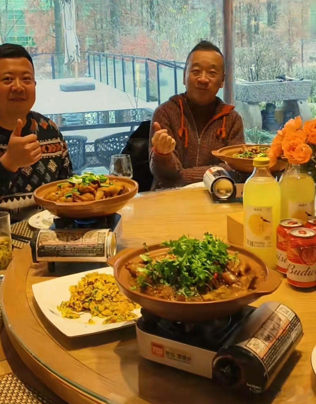 刘亚津挨个打卡了当地的炖锅、奶茶、桃酥,坐在餐桌旁咀嚼着广德锅子的刘亚津,对着镜头竖起了大拇指。