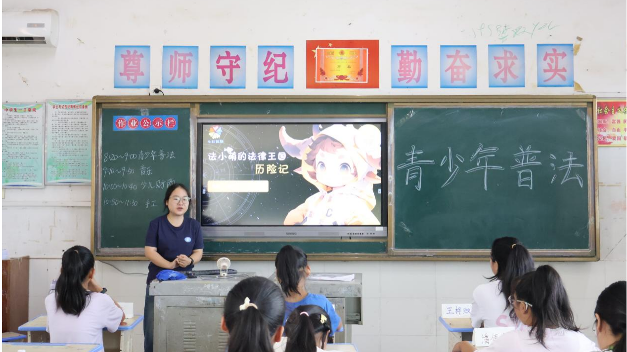 “原来给同学起侮辱外号是违法的!”在岳阳新墙镇中心学校的课堂上,一声童音的惊叹道出了普法教育的成效。近日,湖南财政经济学院财青志愿服务队联合新墙镇司法所,共同开展“青春与法同行,安全伴我成长”主题普法活动,为乡村留守儿童带来一堂别开生面的法治课。