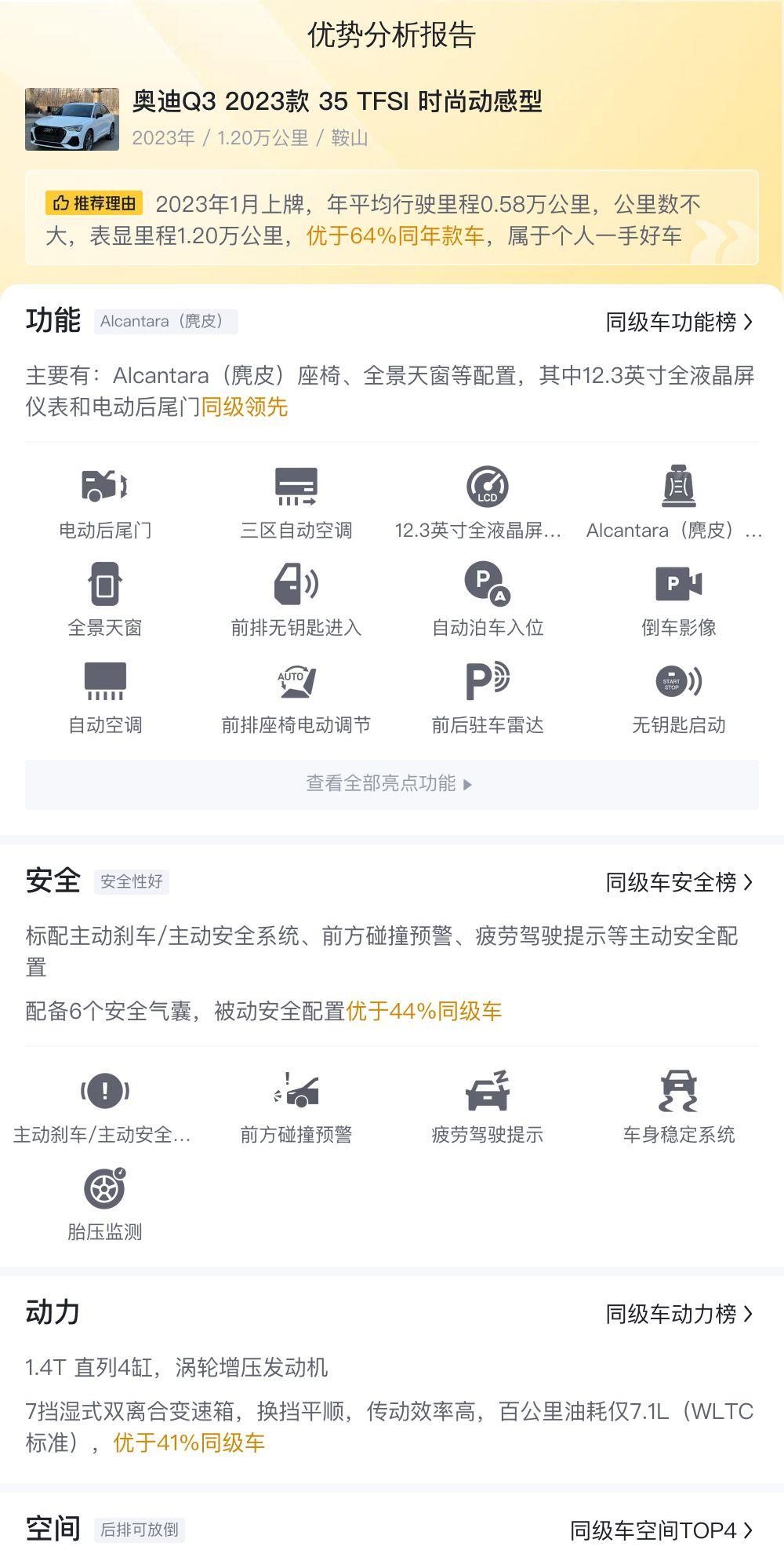 17.9万,买一辆一年车龄的豪华品牌SUV?听起来像是天方夜谭,却又真实存在。这辆奥迪Q3 2023款 35 TFSI 时尚动感型,正以极具诱惑力的价格出现在二手车市场,引发了广泛的讨论:究竟是捡漏良机,还是暗藏陷阱?今天,我们就来深度剖析这辆二手奥迪Q3,看看它究竟值不值得入手。