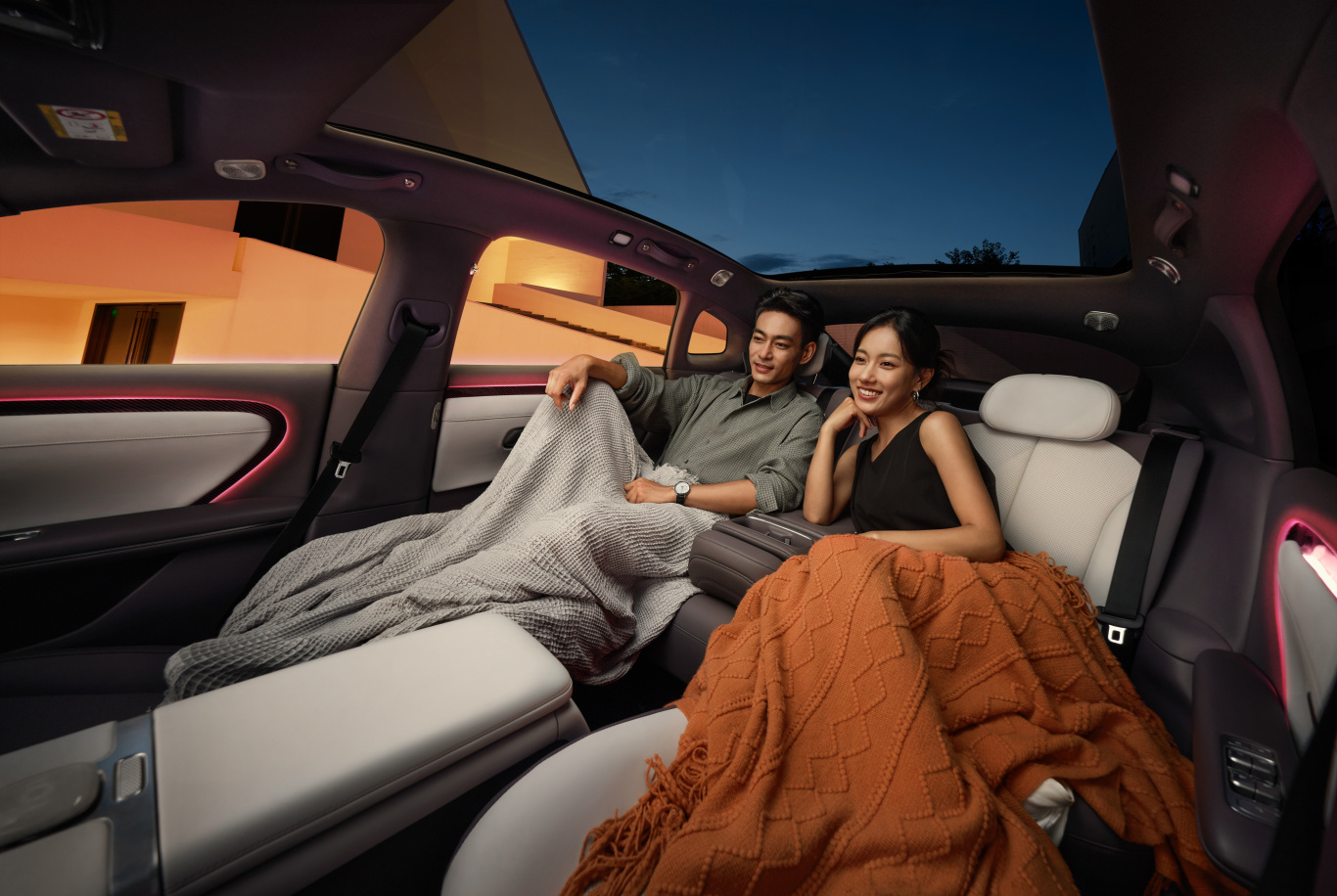 乘坐舒适性方面,长安启源A06也给得够多。全车四季零压电动按摩座椅,前后排均支持通风、加热与14点按摩功能,后排座椅最大仰角达145°并支持扶手角度智能同步,直接把坐家轿抢前排的“传统”改为抢后排。基于这一设计,前排放倒与后排相连,就是一张超爽的28点按摩大床。加上9.5升双层车载冷暖冰箱、四门双层隔音玻璃、带电动遮阳帘的2.5平米玻璃车顶、支持支持7.1.4全景环绕声的20扬音响系统,无论携手看天还是并坐观影,情绪价值满满。