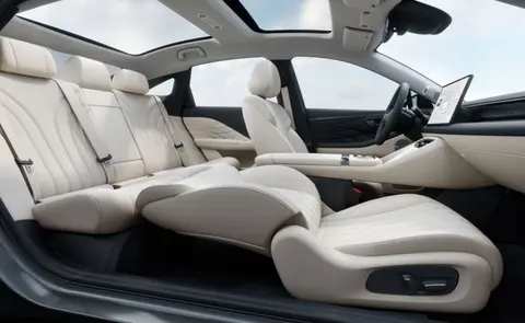 尺寸上,埃安RT虽然是A+级定位,但却拥有2775mm的轴距,后排腿部空间940mm,坐垫高度320mm,比很多B级车的空间都要好。不仅副驾可以放平变成“贵妃椅”,前排也可完全放倒秒表“大床房”。