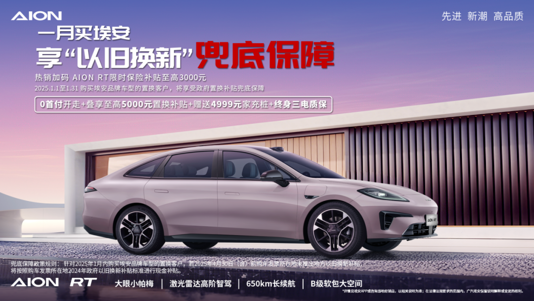 面对埃安RT诱人的产品力,相信很多朋友也会对这款新车上市后有什么样的优惠政策呢?新春将至,即日起至2025年2月28日,广汽埃安推出限时购车政策,活动期间,购买第二代AION RT可享限时保险补贴3000元,并提供0首付、叠享5000元置换补贴、赠送4999元家充桩、终身三电质保等权益。1月份购买埃安品牌并置换的用户,若2025年4月30日(含)前购车发票所在地未推出地方以旧换新补贴,将按照购车发票所在地2024年政府以旧换新补贴标准进行现金补贴。(具体优惠以当地政策为准)。