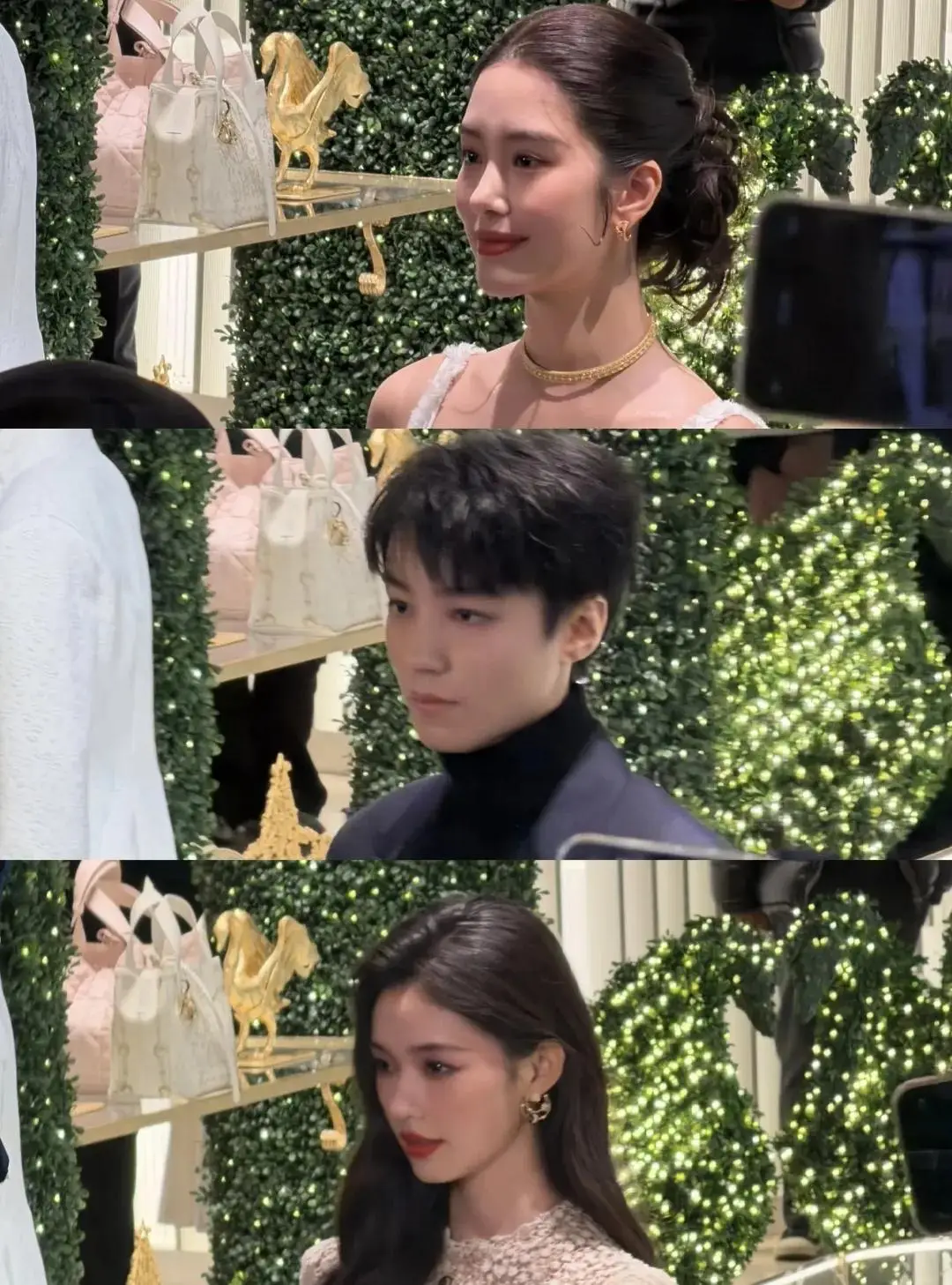 之后再看本人的状态,眼里藏不住疲惫,南京活动现场,路人镜头里的她全程强撑笑容,被工作人员调整裙摆时瞬间耷拉下嘴角,眼神空洞无神采。有粉丝辩解 “是造型问题”,但生图中明显的黑眼圈和松弛下颌线,暴露了休息不足的真相。