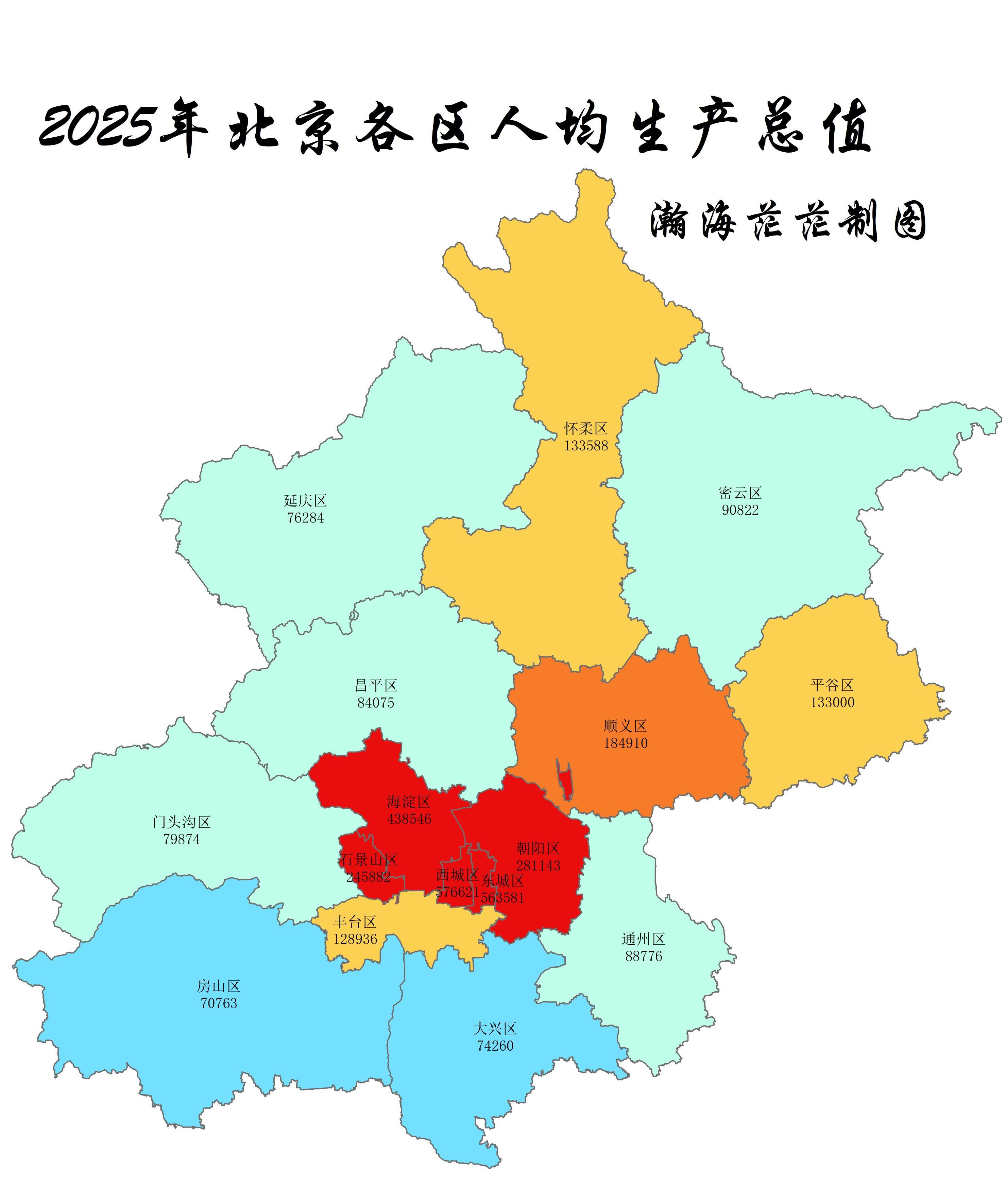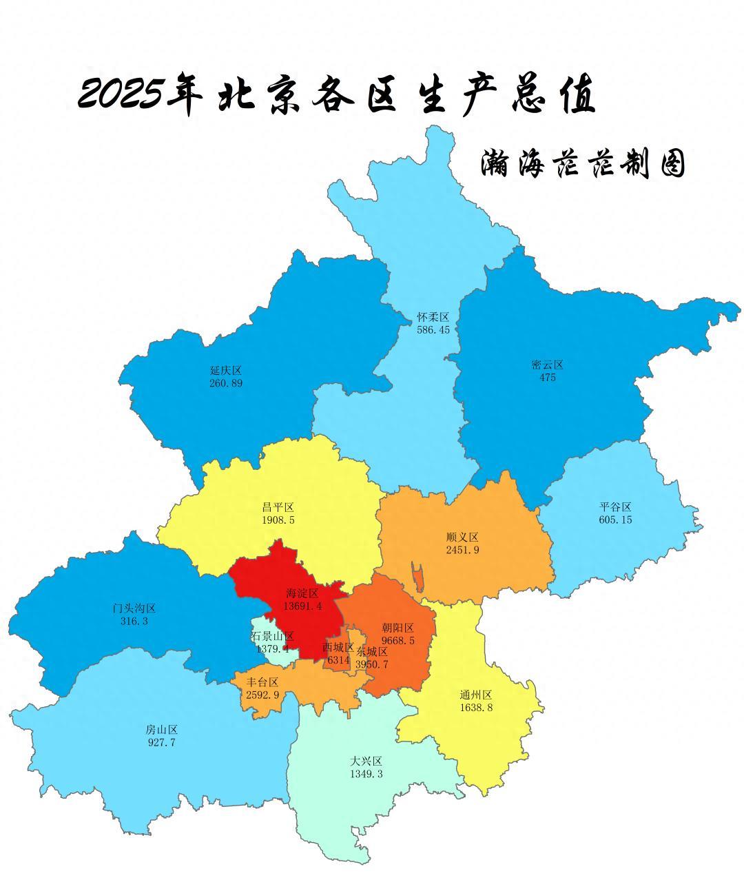 接下来,我们来看下2025年北京市各区县生产总值。