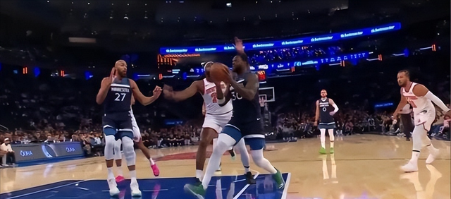 第二节,森林狼替补上来之后打出一波7-2的攻击波,尼克斯新援克拉克森率队追上比分,随着迪林厄姆+香农再次命中三分,森林狼34-27领先尼克斯7分。布伦森随后找到手感,先是命中一个3分球,随后再打进1球,这边儿终于进了一个3分,随后梅开二度进一步缩小分差。半场比赛结束森林狼44-38领先尼克斯5分。