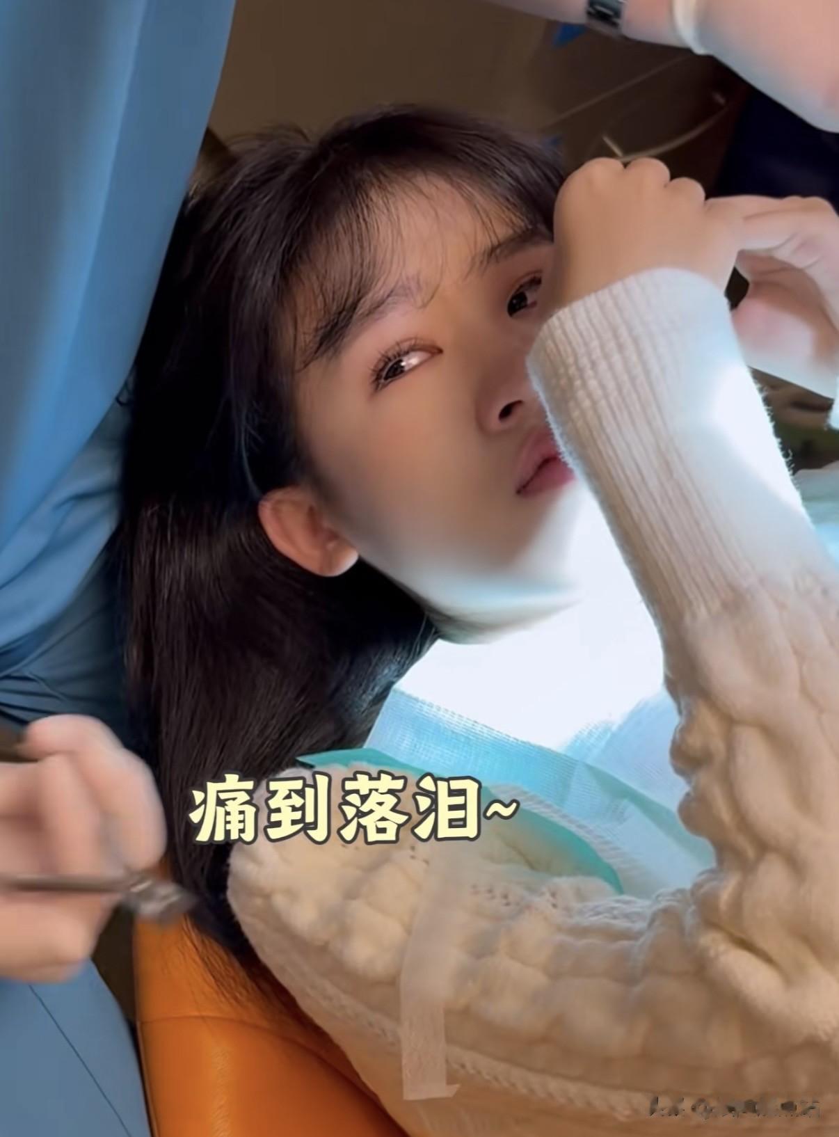 然而,当牙医开始操作,那种紧贴牙根的牙套被强行剪断的酸爽感,瞬间击垮了她的心理防线。