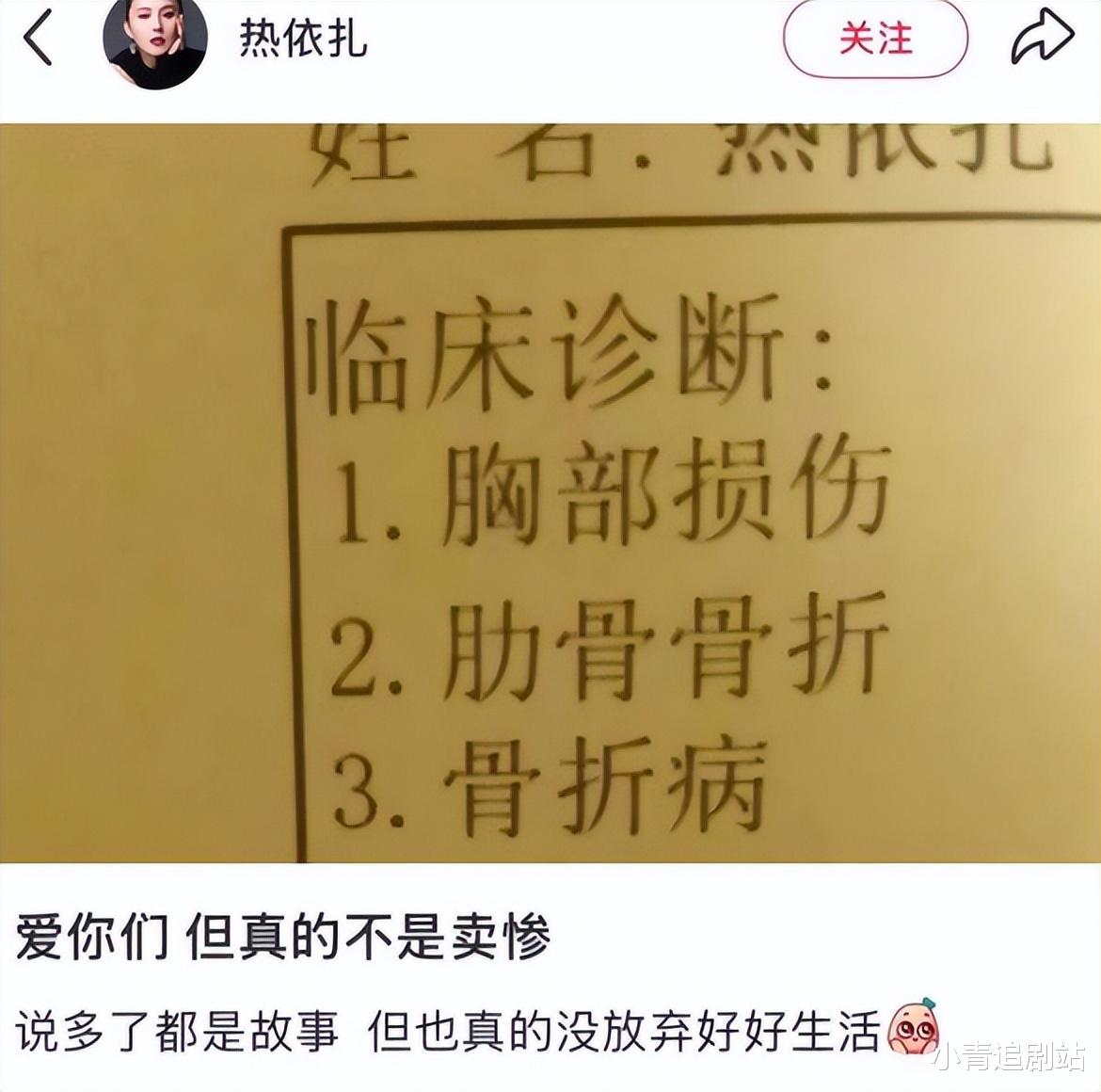 8月24日凌晨,热依扎还曾发文:爱你们,但真的不是卖惨,说多了都是故事,但也真的没放弃好好生活。