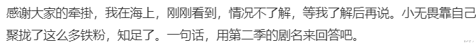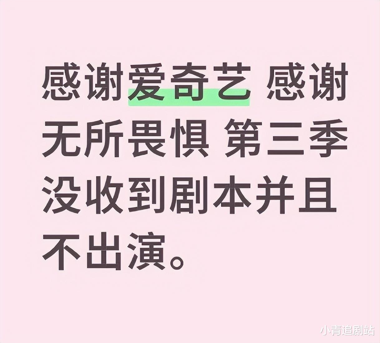 所以,不仅是《无所畏惧》不再继续,她手里甚至还没任何新剧。