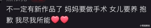 原因,她也做出了解释。母亲要做手术,还要照看女儿,所以只能抱歉了,不一定会有新作品。