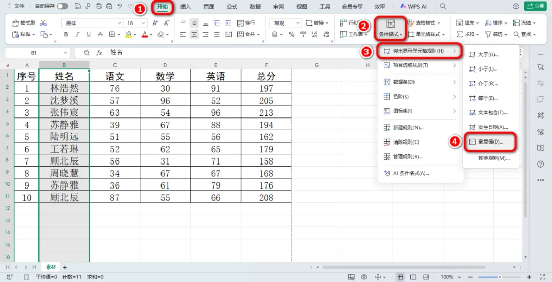效果立现:所有重复的数据瞬间被指定的格式标记出来,一目了然!