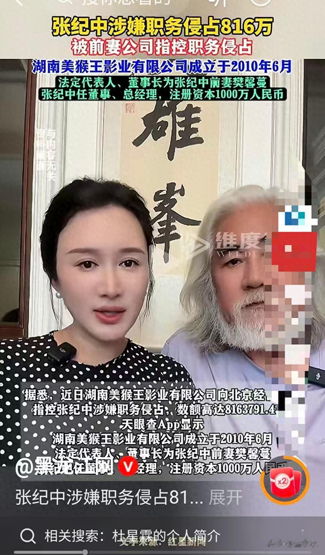 搜狐网曾爆料,樊馨蔓出示海外转账记录,指控张纪中离婚前48小时将北京两套别墅、影视公司股权及海外基金(总值超3亿)转至杜星霖名下。