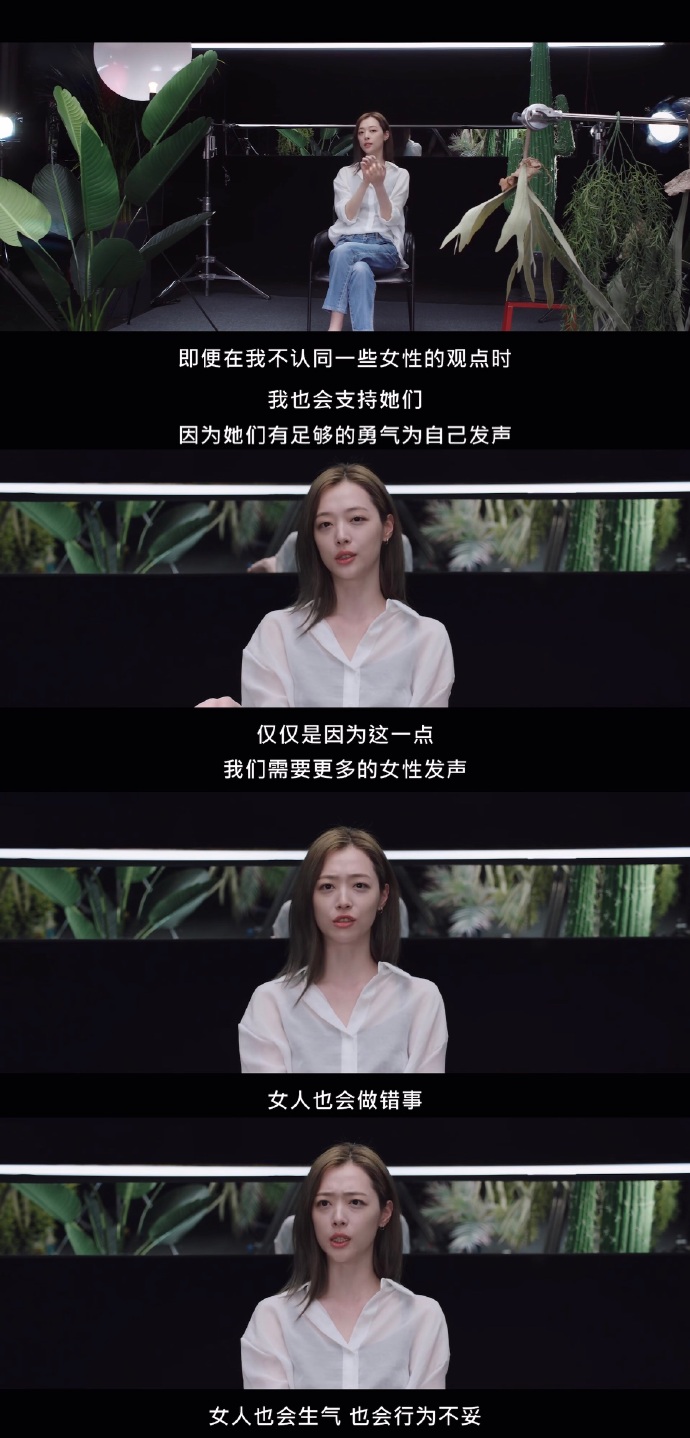 “即使我不认同一些女性的观点时,我也会支持她们,因为她们有足够的勇气为自己发声,仅仅是因为这一点,我们需要更多的女性发声。”