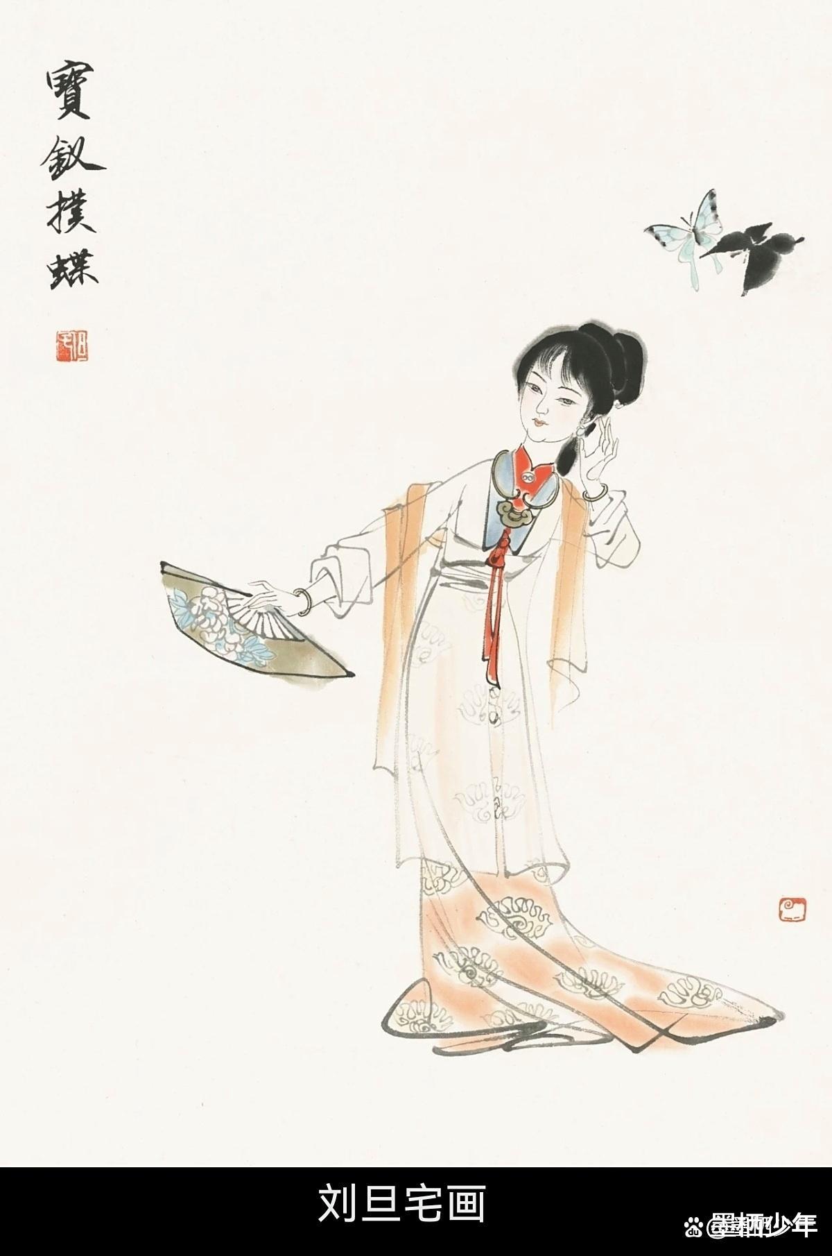 刘旦宅用明丽色彩勾勒蝶舞与浅笑,满是生机;