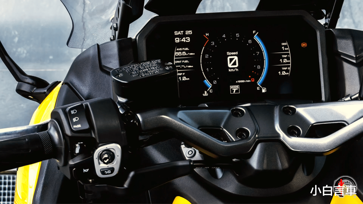 配置层面具备了家族最强的搭配,全彩仪表,LED光源,电控方面提供了IMU惯性测量单元,TCS感应牵引力控制、滑动控制系统 (SCS)、前轮提升控制系统 (LIF)、发动机制动管理 (EBM) 和ABS制动系统。