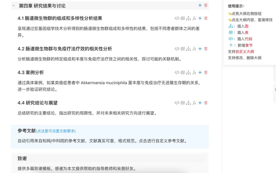 2、免费大纲生成与调整,适配AI论文写作框架需求: