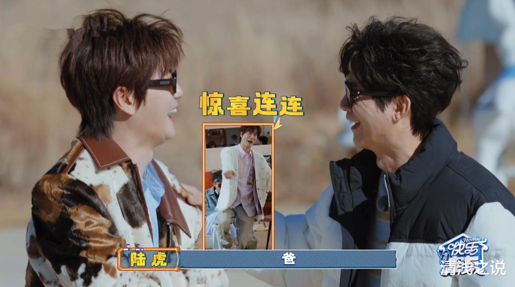 两人这时才发现,原来相处多年的他们那么有缘,跟老陈简直是悍死的缘分。陆虎大概是想起他们的短剧《爷爷今年十八岁》的剧情,既然他可以叫张远“爸”,那也是可以对着陈楚生叫声“爸”的。陈楚生则把陆虎当成陆虎岳父,叫对方“老陈”。就这样,老陈的女婿和老陈相互认亲,互相拥抱,感叹缘分的奇妙。