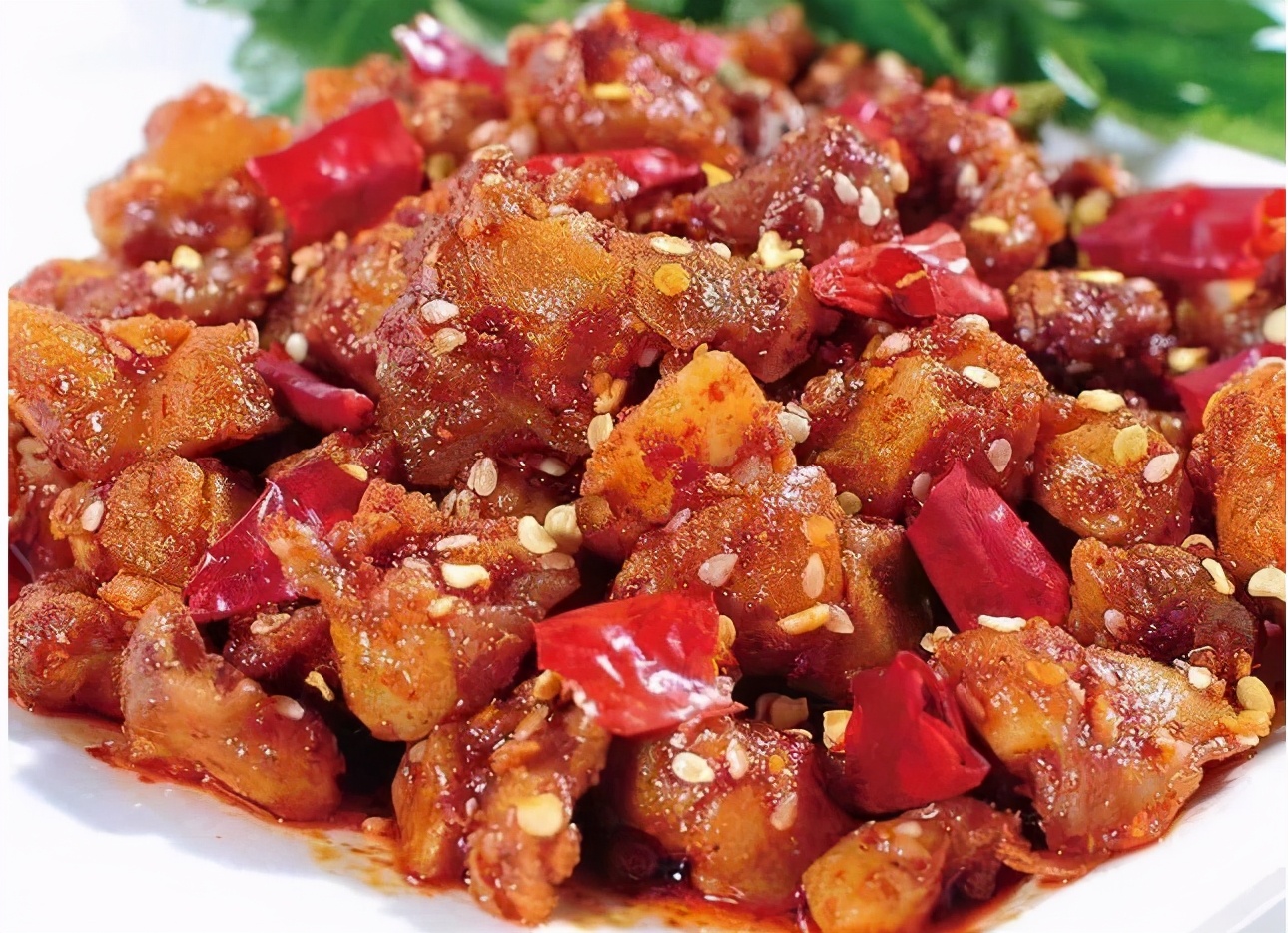 材料:牛柳,青笋、香辣酱、小米椒末、孜然粉、熟芝麻,盐、料酒、生粉