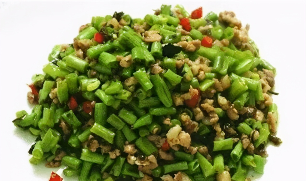 7、出锅之前把猪肉碎倒进去一起翻炒均匀即可出锅。