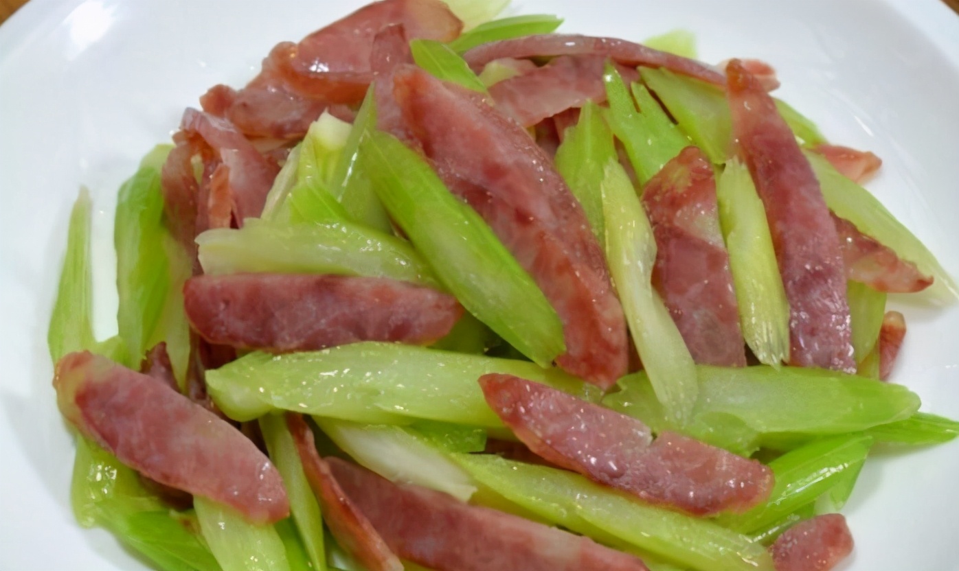 做法1、芹菜去叶洗净,掰掉根部,撕去部分老筋,斜切成粗丝。香肠纵分两半,斜切成薄片。