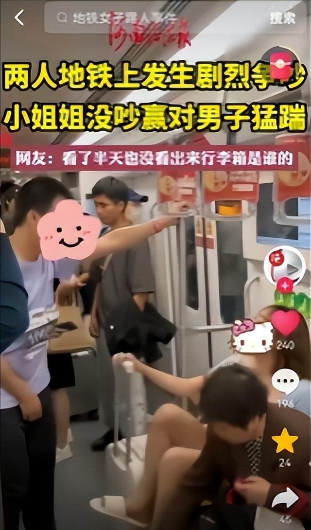 两人地铁上发生剧烈争吵,小姐姐没吵赢对男子猛踹