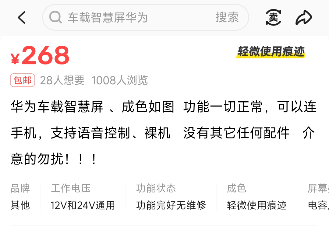 现在有一个非常重要的点,那就是价格!如今到二手交易平台上去搜索一番,最低只需要268元就能够淘到它!那些外观成色较好的也就300出头,而全新未激活的产品价格大约在400元左右,这样的价格与最初发布时相比,简直就是打骨折,要是你使用的不是华为品牌的手机,也可以去搜索盯盯拍自己推出的非华为版本智慧屏,价格大致相同,有时候甚至还能更加便宜一些。