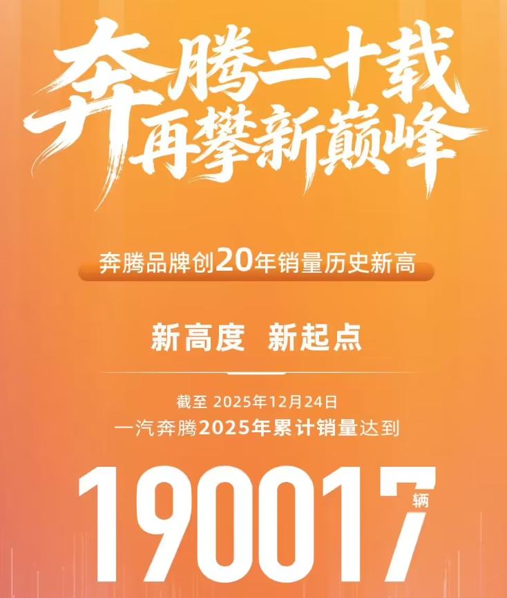 那辆在兰海高速上失控狂飙的奔腾B70,不仅牵动着公共安全的神经,更关乎着奔腾车主们的用车安全。可有意思的是,就在今天,在官方还未给该事件一个解释的情况下,一汽奔腾却抢先发布了2025年的销量报告,像是在宣告着他们的胜利。