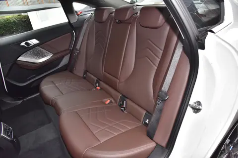 车身空间方面,三者均为4门5座三厢轿跑,尺寸相近(以M235L为例:车长4534mm、宽1800mm、高1434mm,轴距2780mm)。采用无框车门设计,兼顾实用与质感。178cm体验者坐入后排,膝部约两拳余量,但溜背设计使头部仅三指空间,185cm以上乘客久乘易产生不适感。后备箱常规容积390L(可放两个28寸行李箱),放倒后排扩展至1070L,露营装备或婴儿车均可容纳。