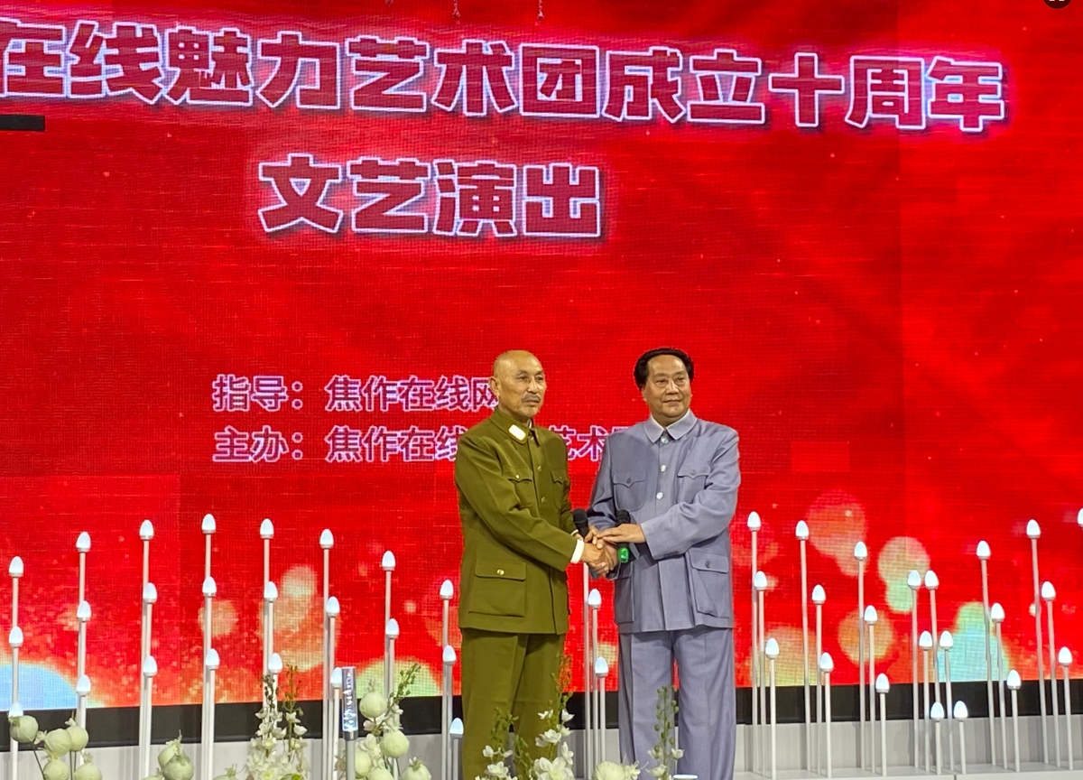 本次活动的一大亮点,是毛泽东特型演员韩清华、蒋介石特型演员张宗振的专程到来。两位艺术家不辞辛劳从外地赶到焦作,他们的出现引起了现场观众的阵阵欢呼。在节目《中华民族大团结万岁》中,韩清华与张宗振同台献艺,以精湛的演技和历史人物的独特气韵,生动演绎了波澜壮阔的历史篇章,传达了民族团结、共创未来的伟大主题。他们的表演形神兼备,极富感染力,将整场庆典的气氛推向了最高潮,赢得了满堂彩,成为十年庆典中最令人难忘的瞬间之一。