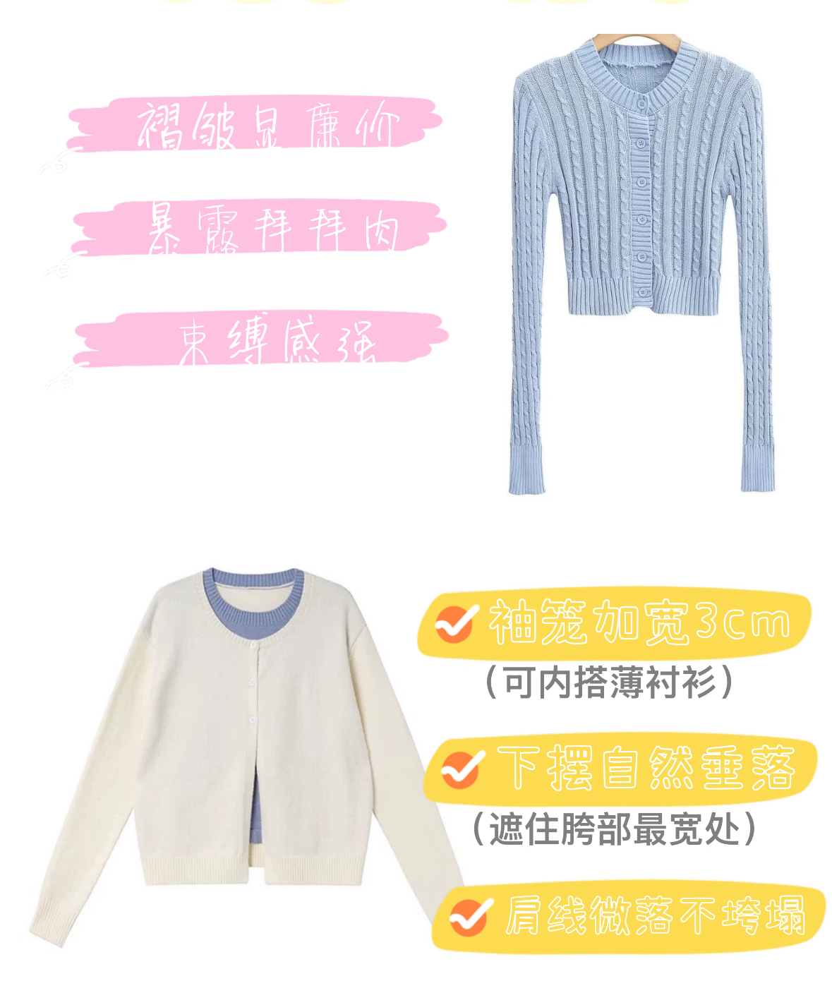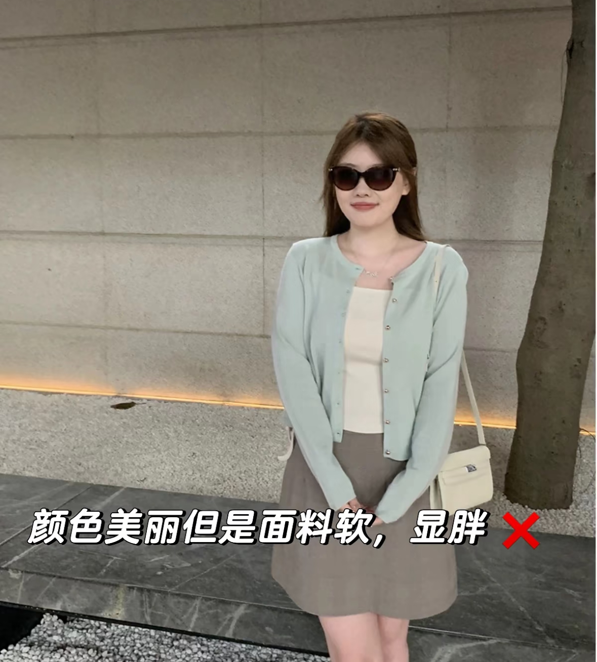 作为时尚博主,之前自己买过不适合的开衫,穿起来像披了条毯子,整个人显得更宽了。后来才明白:肩线得刚好落在肩膀边缘,衣长最好在臀中附近,不过短不拖沓,才是适合大多数人的黄金尺寸。