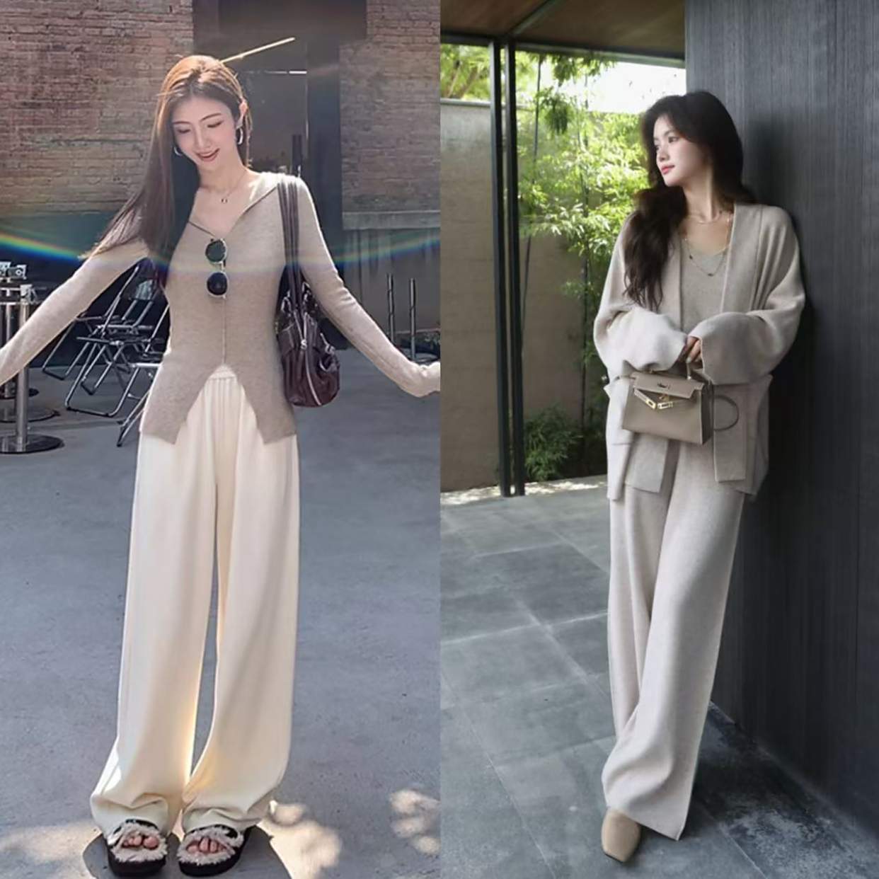 胯宽、腿粗这样穿:针织套装——修身上衣+阔腿针织裤