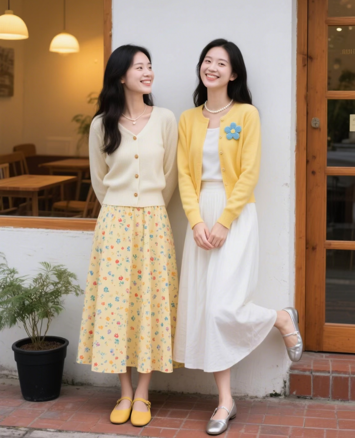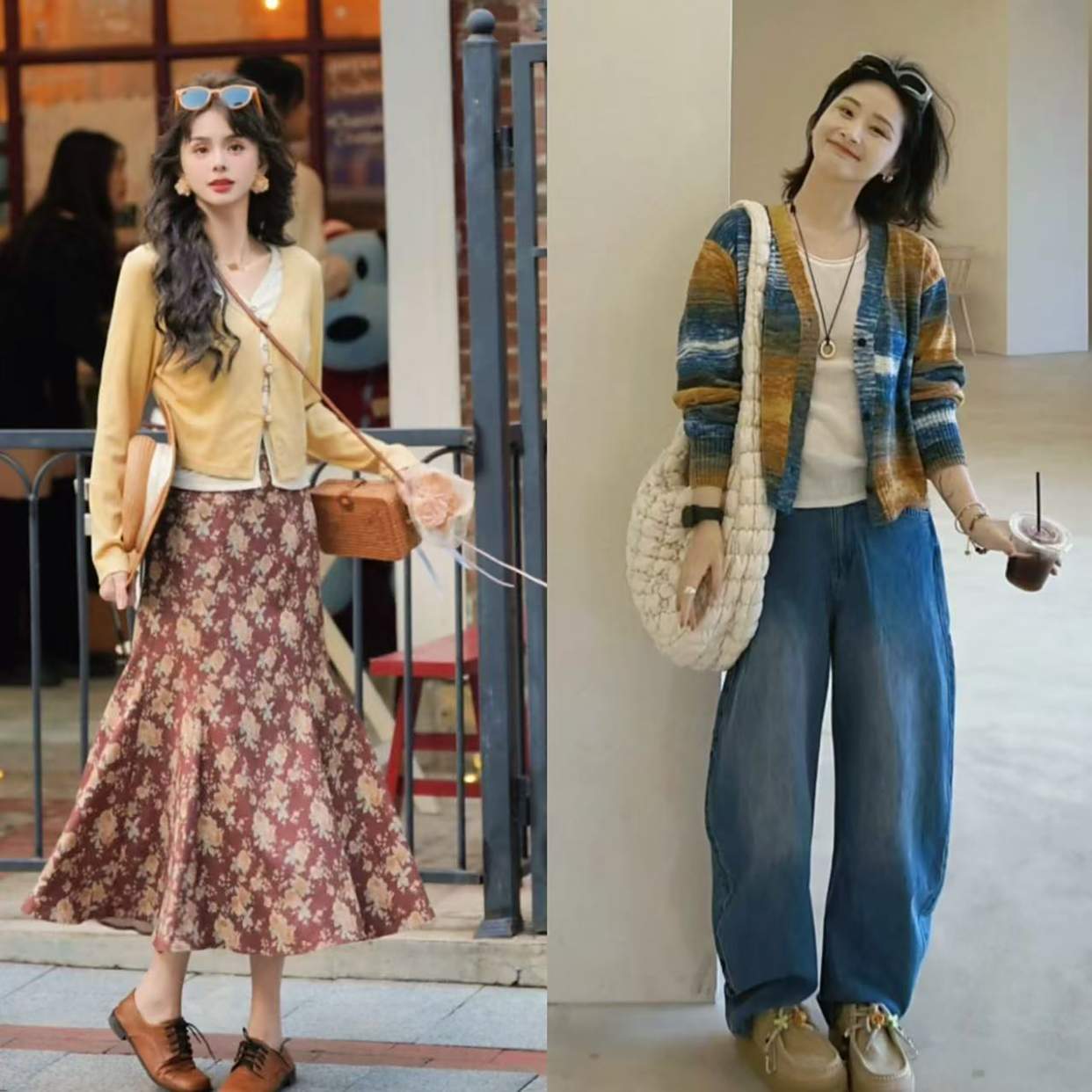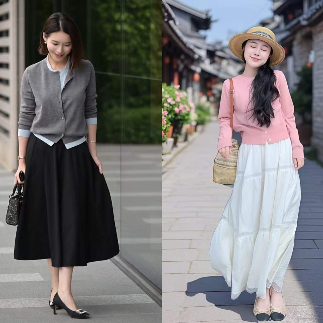 不知道姐妹们有没有试过,在初秋的微凉天气里,用一件软糯的开衫配一条飘逸的半裙?走起路来衣摆与裙角轻轻摆动,整个人都显得轻盈了。